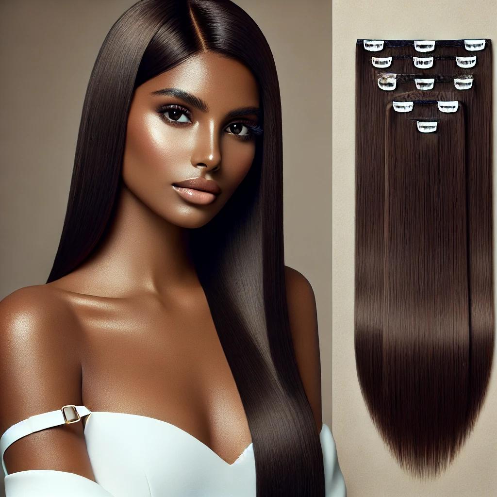 Get a sleek, fuller hairstyle instantly with our #2 Straight Clip-In Hair Extensions. Featuring a beautiful #2 dark brown shade, these extensions blend naturally with darker hair tones to create a seamless and polished look.