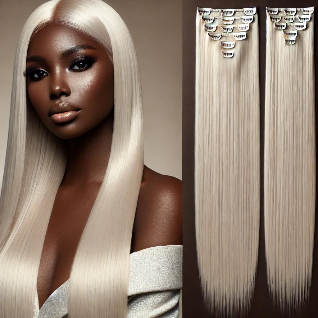 The 613 Bright Platinum Blonde Straight Clip-Ins are stunning hair extensions designed to instantly add length, volume, and a bright icy-blonde tone to your hairstyle. The 613 shade is a classic platinum blonde color known for its light, radiant, and glamorous appearance. This bright blonde tone creates a bold and eye-catching look while adding a touch of elegance and modern style.