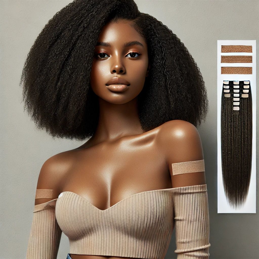Kinky Straight Tape‑In Hair Extensions 20pcs Per Pack 100% Human Hair